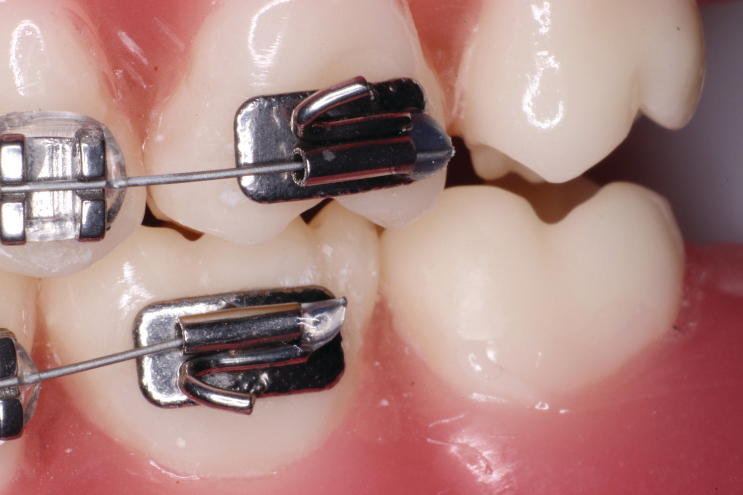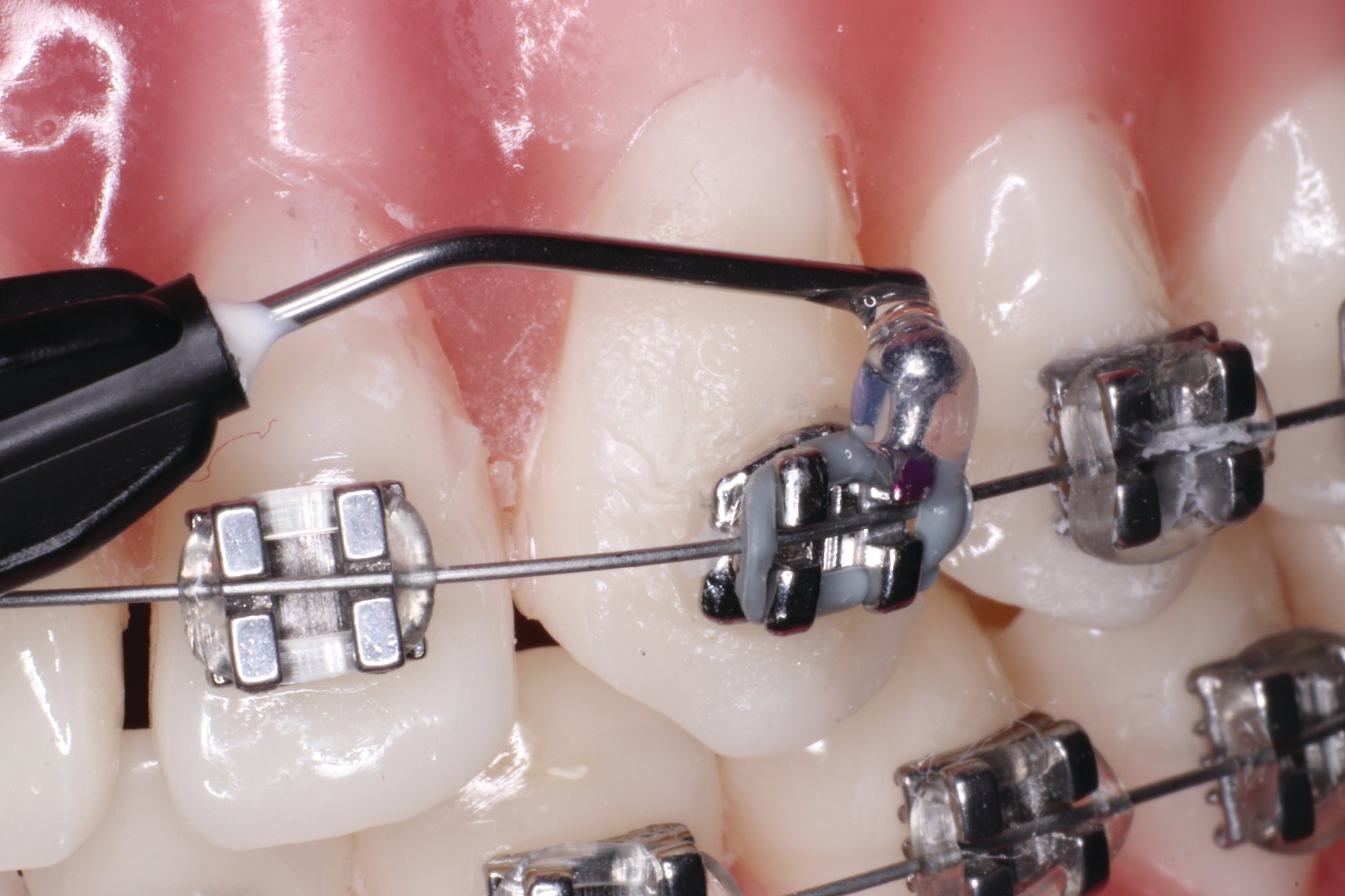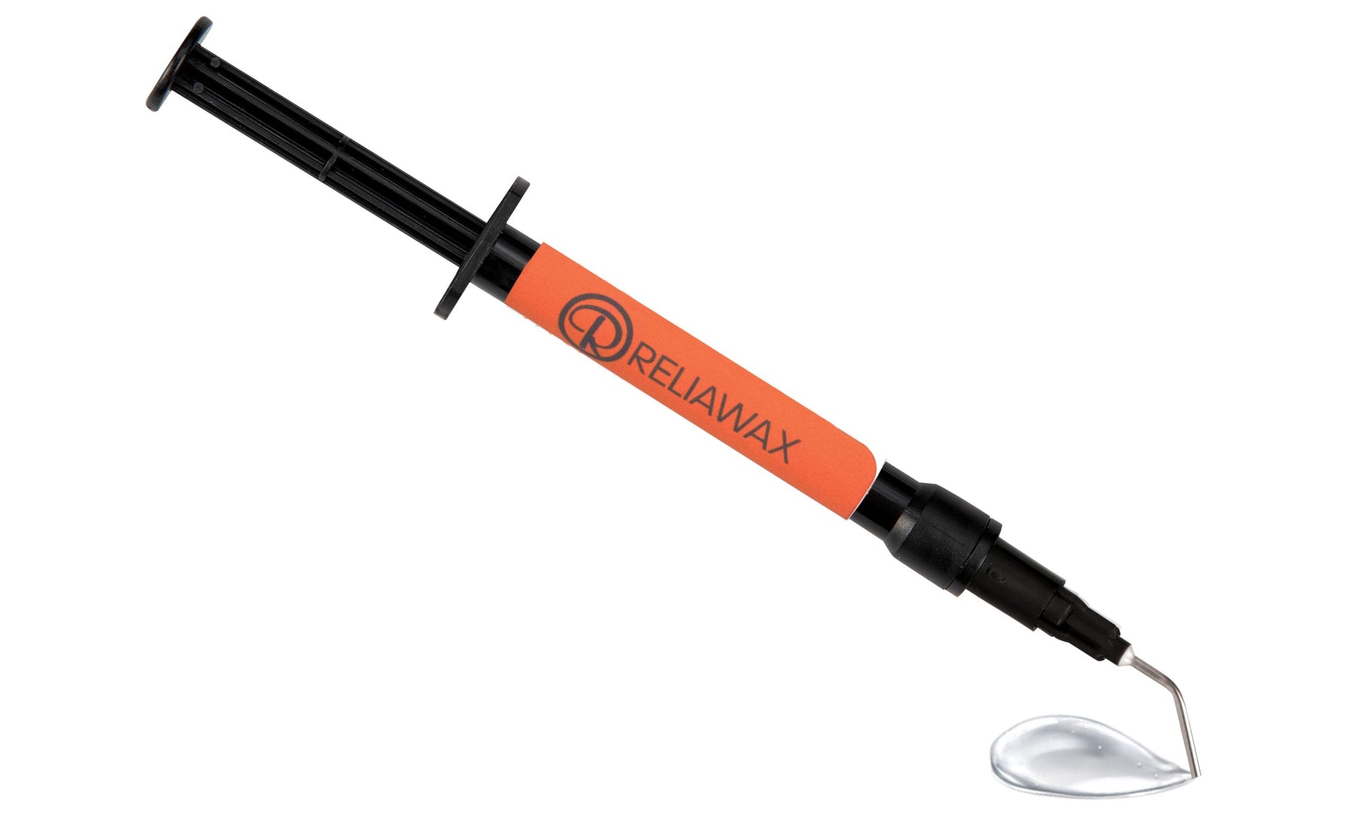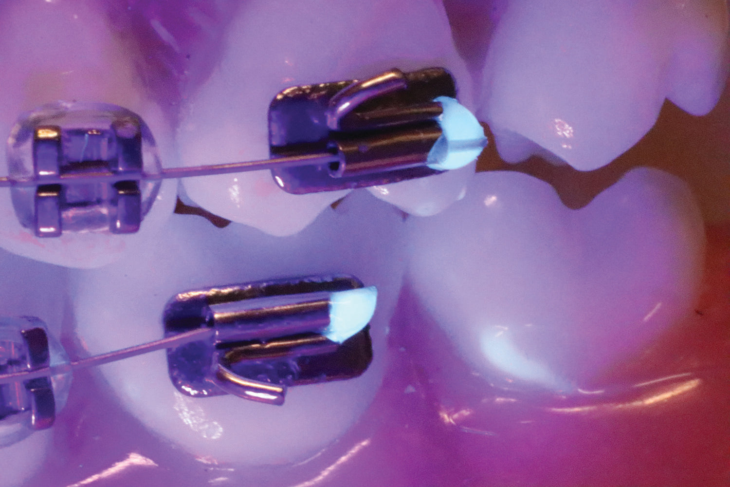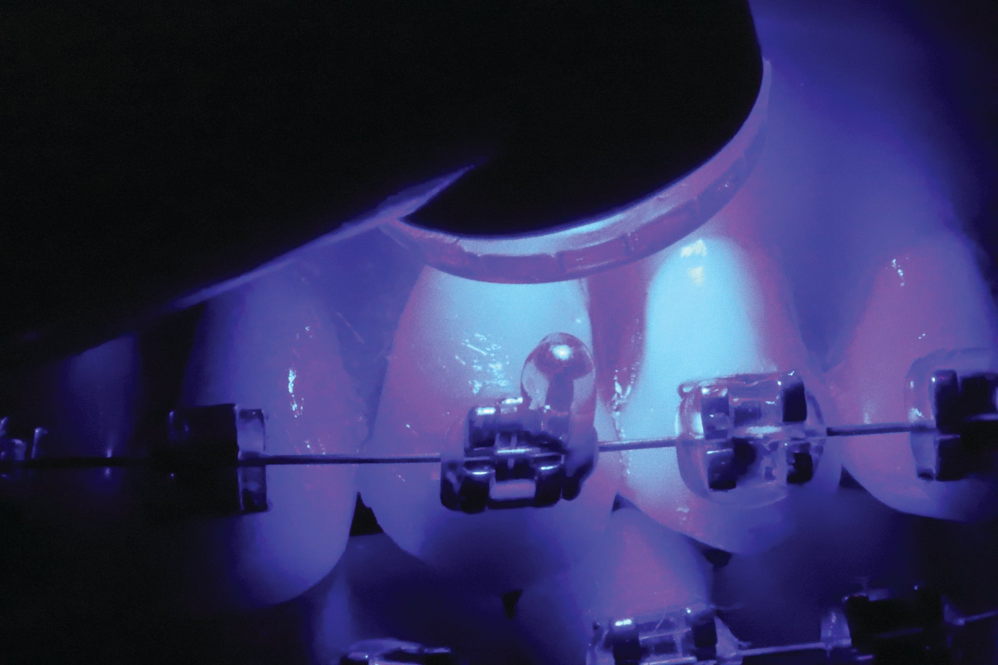 Light-curing gel in a syringe. Once cured, it stays in place between appointments.