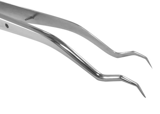 Die dreifach abgewinkelte Spitze sorgt für bessere Sicht und Bedienung. Die dünnen Spitzen passen in den Flügel der Brackets. Die Oberfläche der Spitze, die mit den Brackets in Berührung kommt, ist für einen sicheren Halt flach ausgeführt.