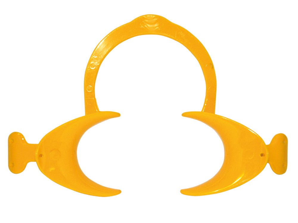 Wiederverwendbarer Wangenhalter mit seitlichen Griffen.
